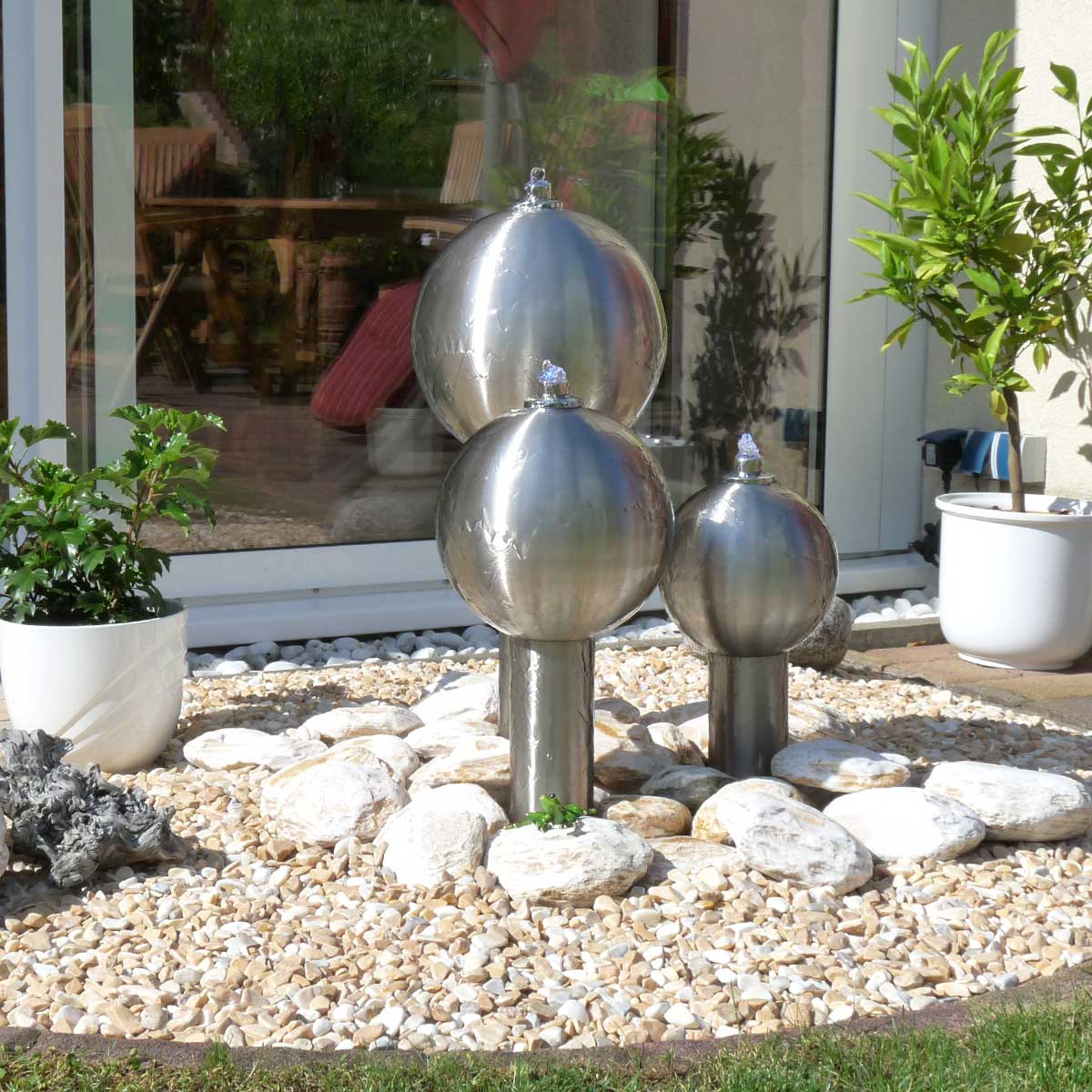 Unsere Brunnen aus hochwertigem Edelstahl sind exklusiv und funktional – ob Wasserwand, Wassersäule oder Kugelbrunnen, ein raffinierter Edelstahlbrunnen wertet Ihren Garten optisch auf. Aber das ist noch nicht alles. In Kombination mit unserer innovativen Pumpentechnik fördert die hohe Wasserqualität ein gesundes und angenehmes Mikroklima: Brunnen mit Kaskadeneffekt erhöhen darüber hinaus die Luftfeuchtigkeit.