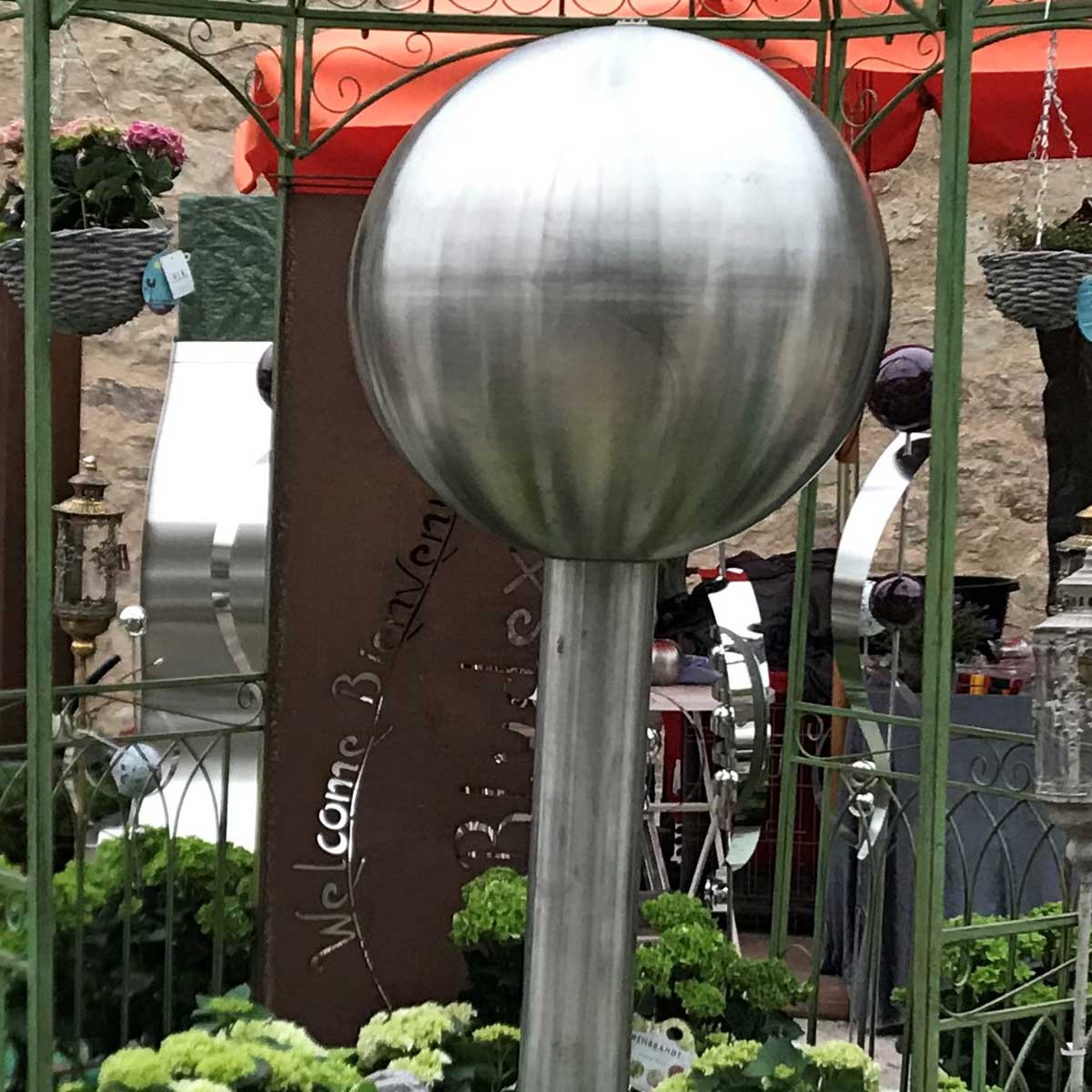 tief 1m/ Edelstahl / Kugel D ca. 1m / Säule H ca. 20cm, D ca. 20cm /