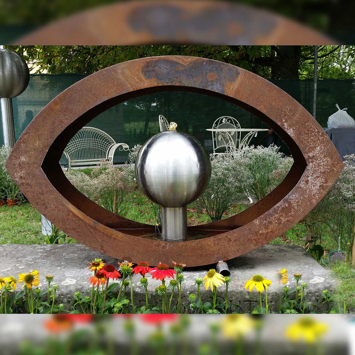 ca. 50cm / Edelstahl und Cortenstahl /Kugel D ca. 50cm/ Säule H ca. 5cm,
