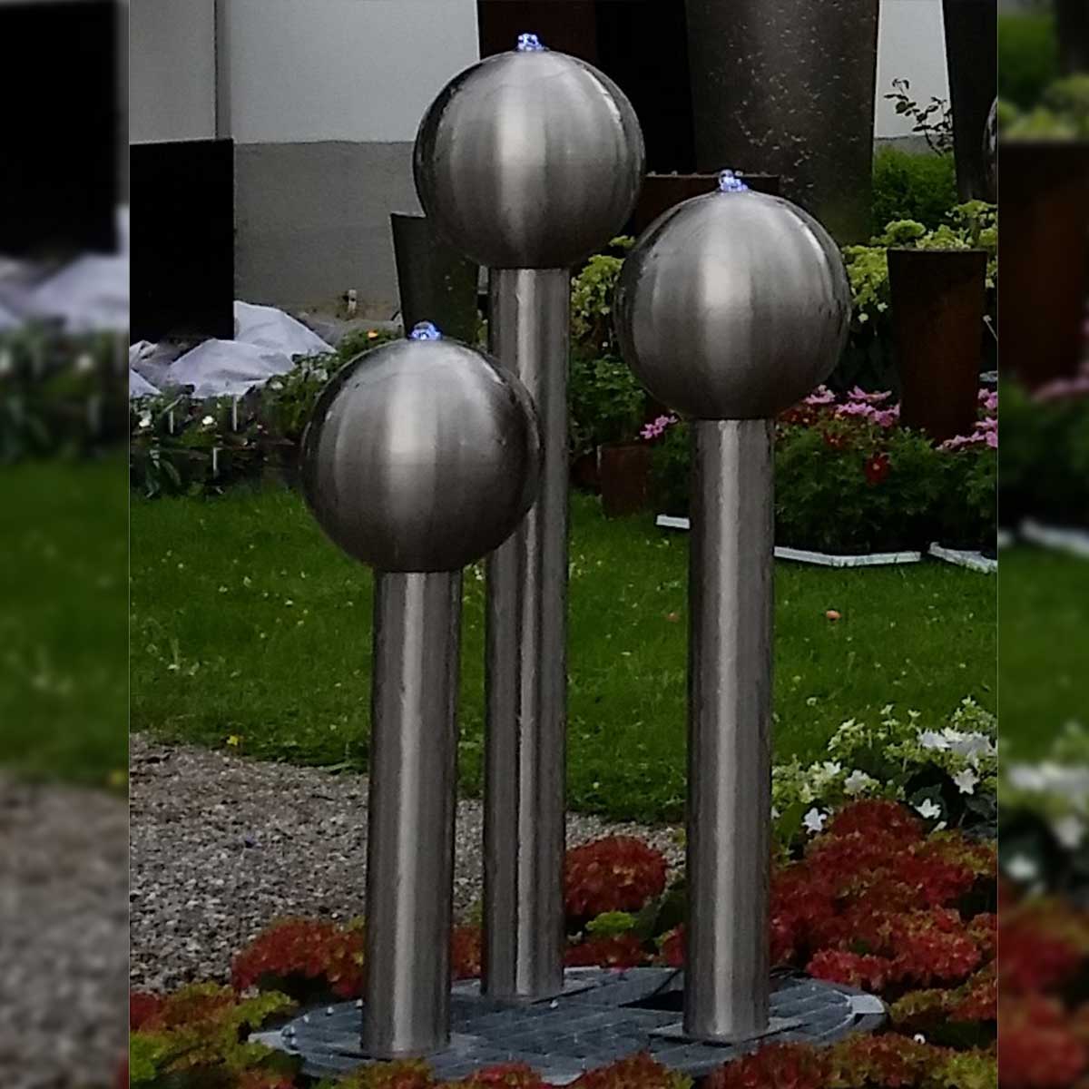 Unsere Edelstahlbrunnen sind in einer Vielzahl von Stilen erhältlich und können nach Ihren Wünschen angepasst werden. Wir bieten viele verschiedene Springbrunnen mit minimalem Installationsaufwand. Die Auswahl reicht von unseren Kugelbrunnen, die sowohl als Einzelkugel als auch als 3er- und 4er-Turm erhältlich sind, über unser umfangreiches Angebot an Elypsen bis hin zu unseren Obelisken. Gerne fertigen wir auch Brunnenanlagen nach Maß an. Teilen Sie uns einfach Ihre Wünsche mit.